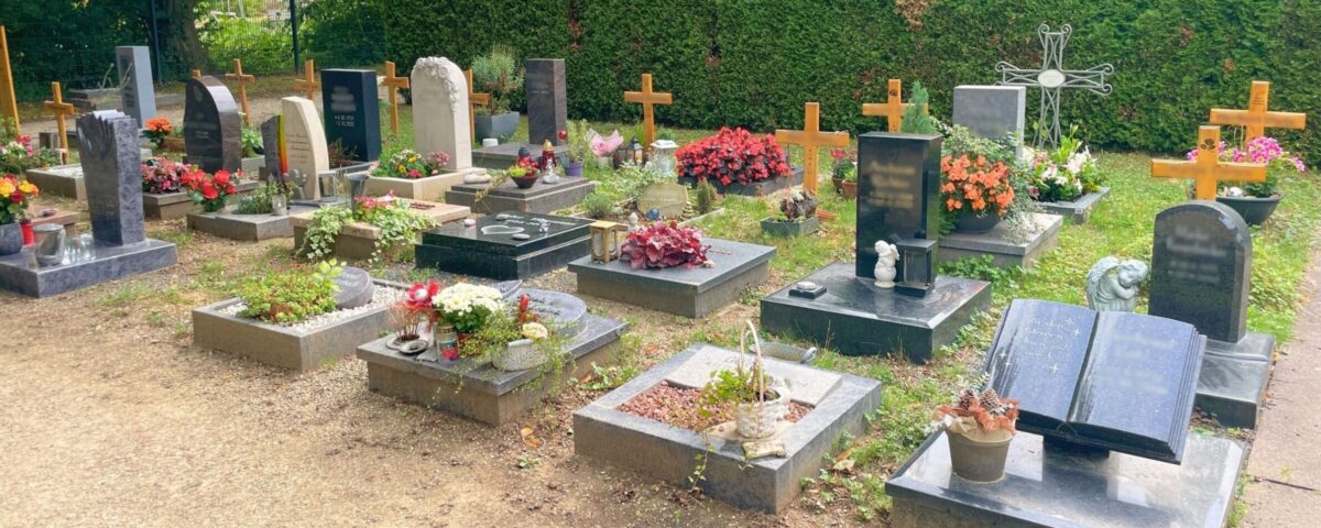- Die Position der Grabstätte auf dem Friedhof kann nicht gewählt werden. Die Belegung erfolgt im jeweiligen Grabfeld der Reihe nach.